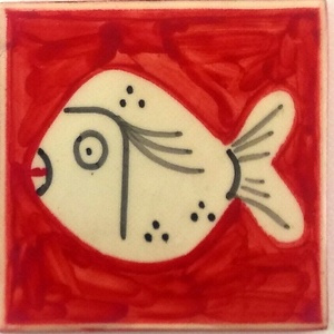 Χειροποίητο πλακάκι διαστάσεων 10cmΧ10cm, από κόκκινο παραδοσιακό πηλό.